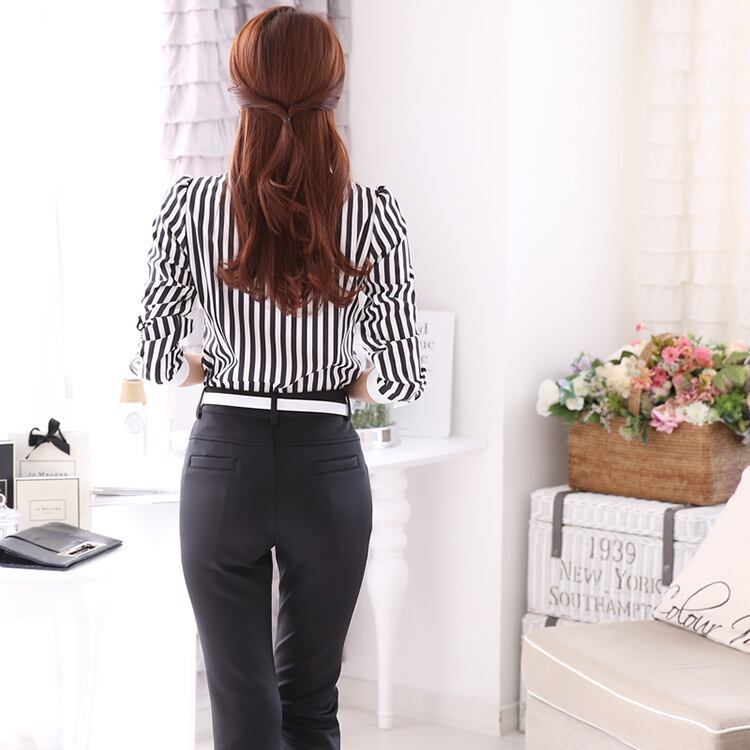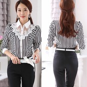 《再入荷》ストライプ レース 長袖 半袖 シャツ ブラウス モノトーン デート 女子会 オフィス
