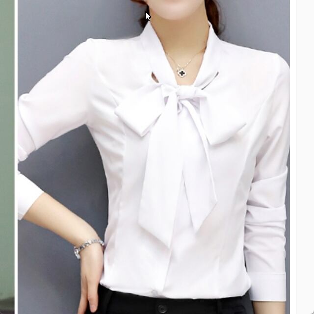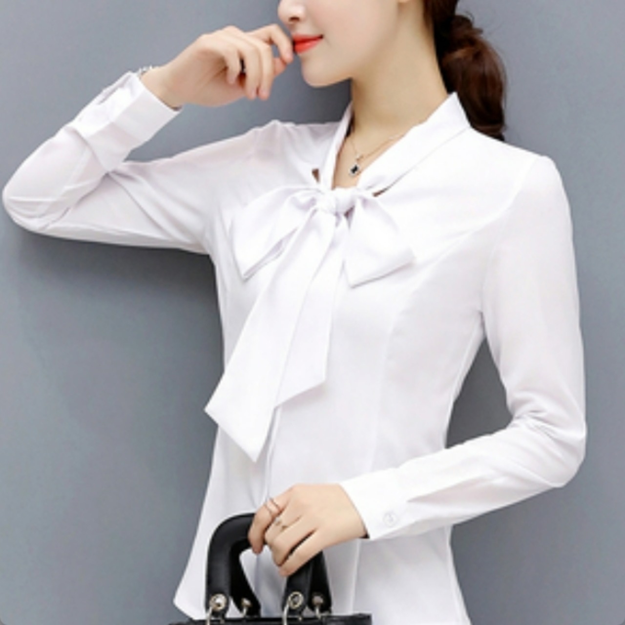 ネクタイ風のリボンが可愛い、色々使える長袖シャツ。