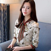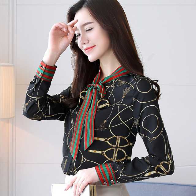 《入荷待ち》シフォン シャツ ブラウス リボンタイ ホワイト ブラック 長袖 レトロ 大きいサイズ 女子会 デート