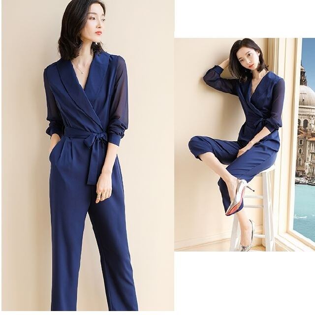 《入荷待ち》シフォン エレガントジャンプスーツ ウエストリボン お出掛け 旅行 リゾート デート 女子会