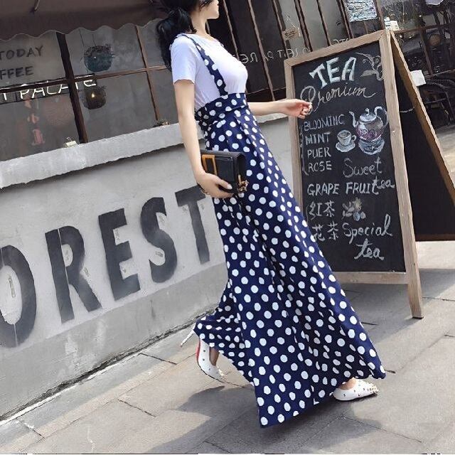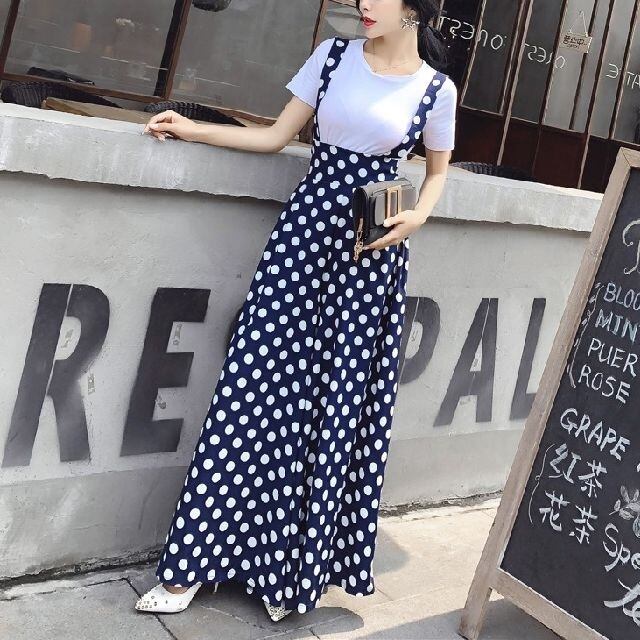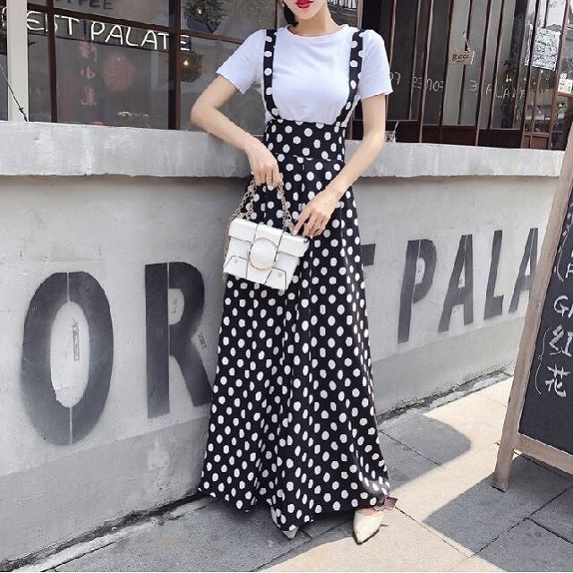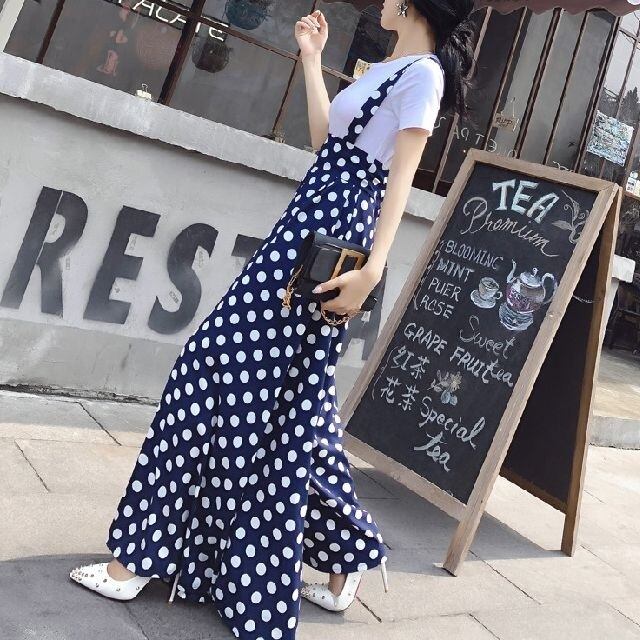 《入荷待ち》可愛い ポルカドット ワイドサロペット パンツ お出掛け 旅行 リゾート デート 女子会