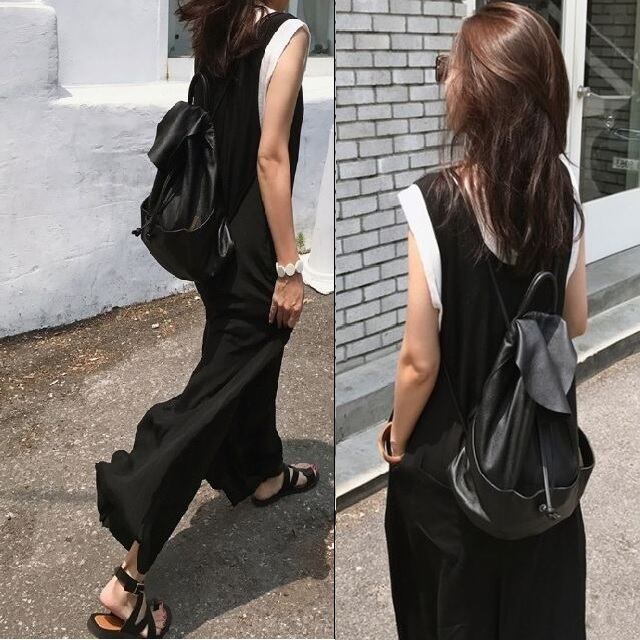 ゆったりしたデザインのサロペットは、楽チンなのにこなれ感