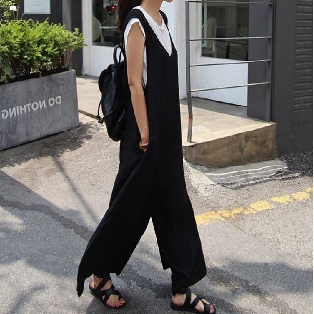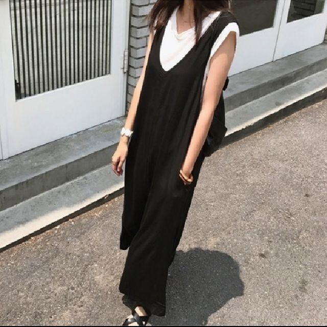サロペット ワイドパンツ オーバーオール Vネック マキシ丈 お出掛け 旅行 リゾート デート 女子会