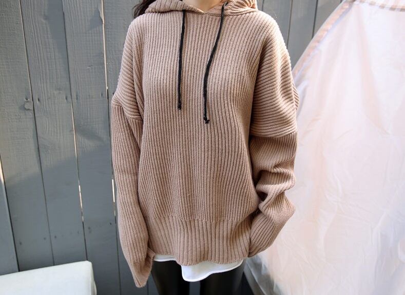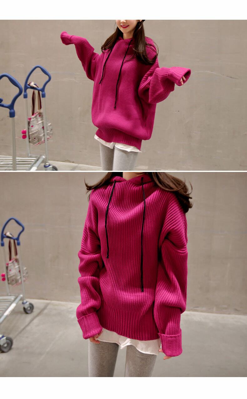 《入荷待ち》トップス ニットパーカー ビッグシルエット オーバーサイズ ゆったり 厚手 長袖 ローズレッド ブルー カーキ