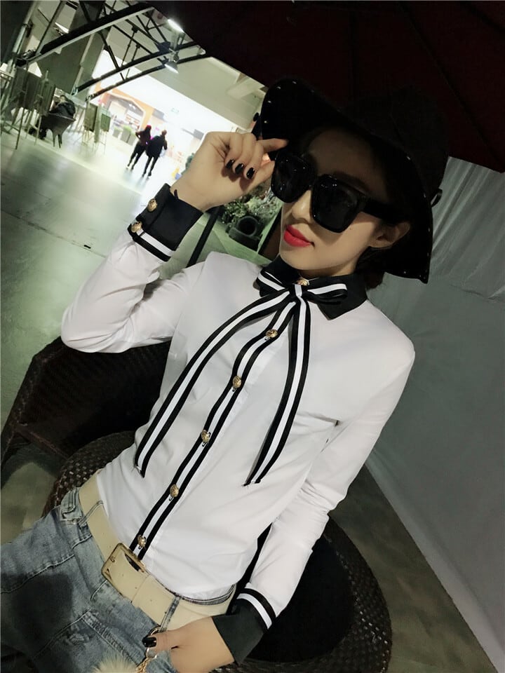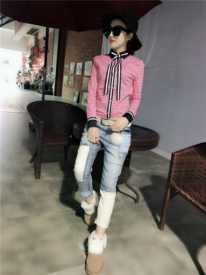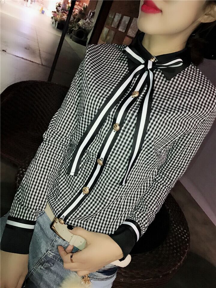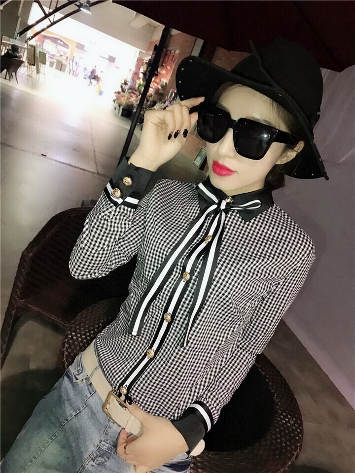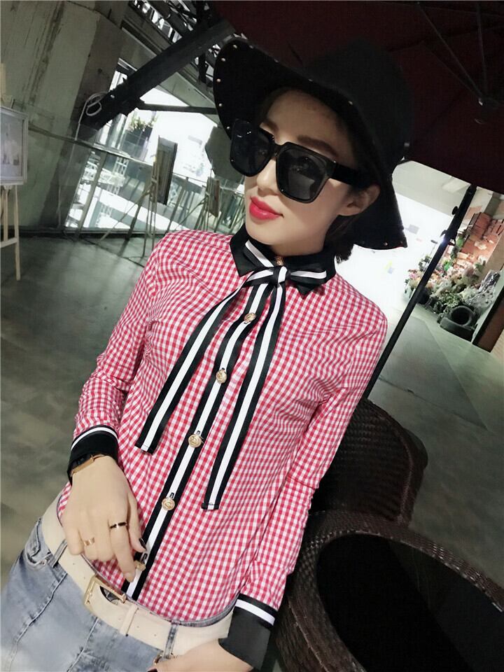 《入荷待ち》チェック シャツ カッターシャツ リボン レトロ ブラック ホワイト レッド 女子会 デート オシャレ