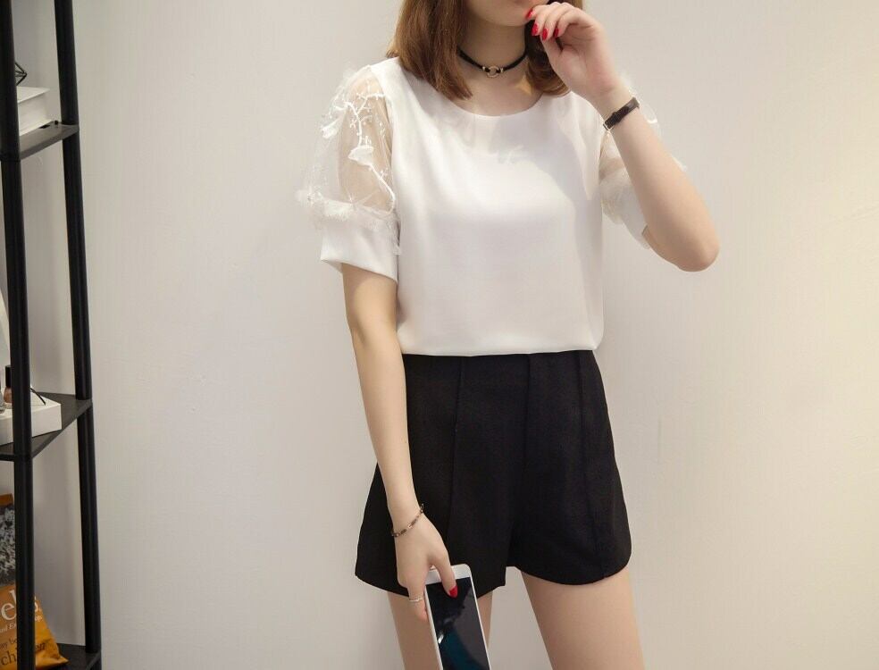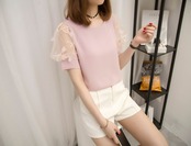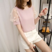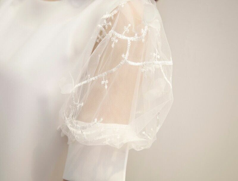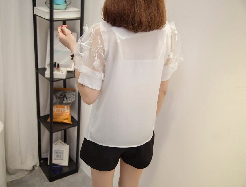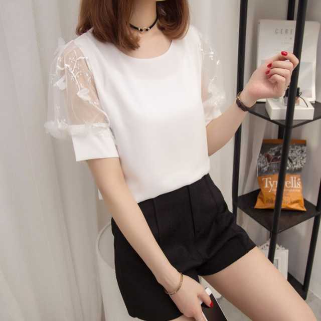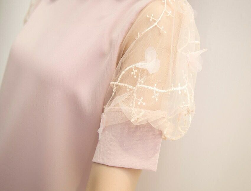 《入荷待ち》シフォン シャツ レース パフスリーブ フェミニン ホワイト ピンク 大きいサイズ 女子会 デート