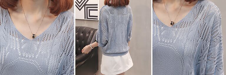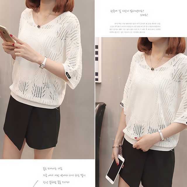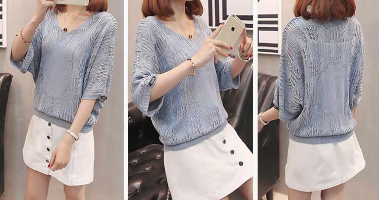 《入荷待ち》サマーニット 七分袖 キレイめ ホワイト ブラック オレンジ ブルー 女子会 デート