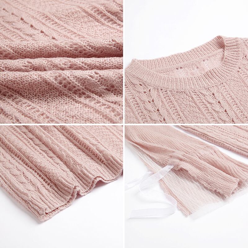 ≪入荷待ち≫サマーニット レース リボン ベルスリーブ フェミニン ピンク ホワイト ブルー 女子会 デート キュート ガーリー 大人可愛い