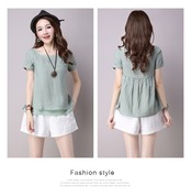《入荷待ち》カジュアル レース シャツ 半袖 ピンク ホワイト グリーン 大きいサイズ 女子会 オフィス シフォン シンプル