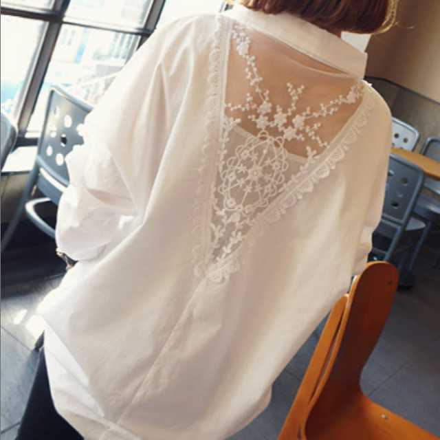 《再入荷》 シフォン シャツ カッターシャツ レース ホワイト 大きいサイズ 女子会 デート 長袖 透け感 刺繍 オシャレ