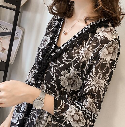 《再入荷》 シフォン カットソー トップス ベルスリーブ Vネック 花柄 ブラック ホワイト ピンク 大きいサイズ 女子会 デート