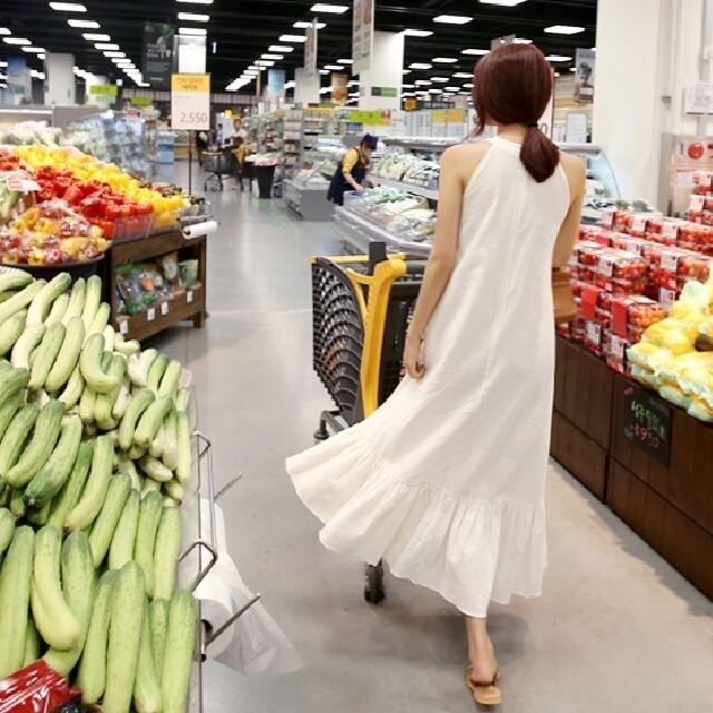 リネン ワンピース ドレス ロング丈 お出掛け 旅行 リゾート デート ナチュラル ノースリーブ ギャザー ティアード