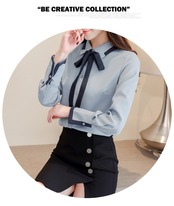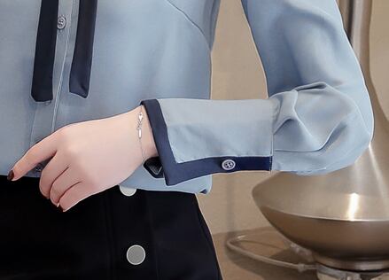 《再入荷》 シフォン ブラウス シャツ リボン ブルー ホワイト 大きいサイズ 女子会 デート フェミニン バイカラー ツートーン