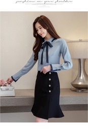 大きなリボンが可愛い、バイカラーがオシャレなブラウス。