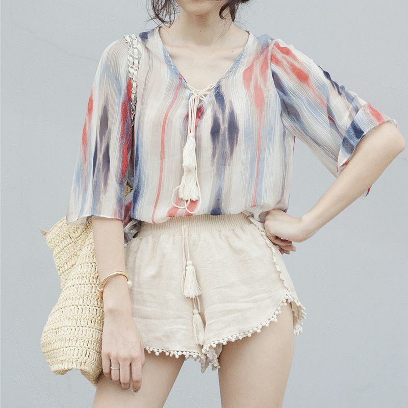 《入荷待ち》リゾート 夏 ビーチ セットアップ シフォン ショートパンツ ホワイト 五分袖 大きいサイズ