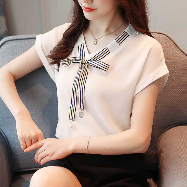 《入荷待ち》シフォン ブラウス シャツ フレンチスリーブ リボン ホワイト ベージュ グリーン 大きいサイズ フェミニン 女子会 デート