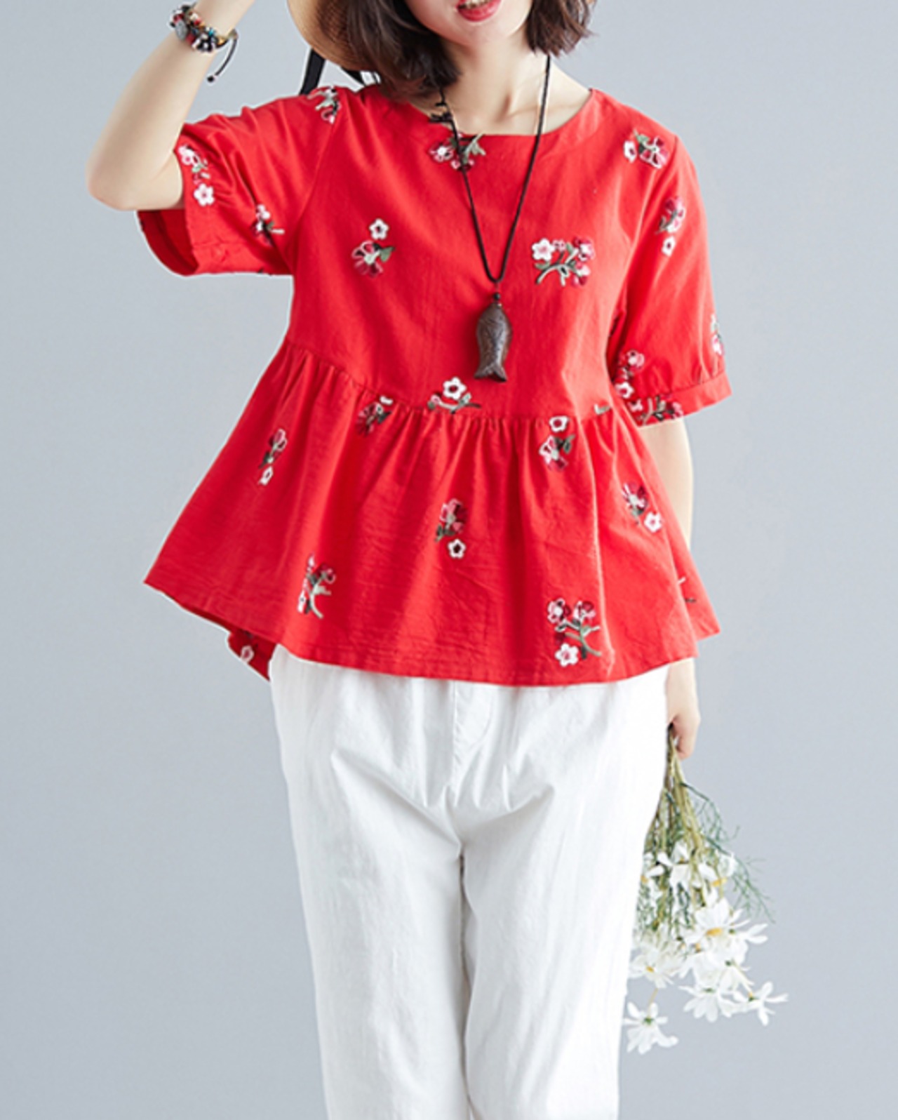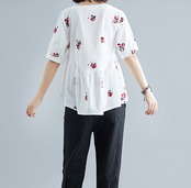 《入荷待ち》カジュアル ブラウス シャツ 花柄 ホワイト レッド ネイビー グリーン 女子会 フレア 切り替え 中原柄