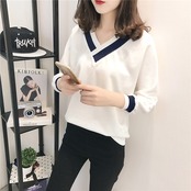 《入荷待ち》 カジュアル トップス Vネック クール シンプル ホワイト ブラック 大きいサイズ 女子会