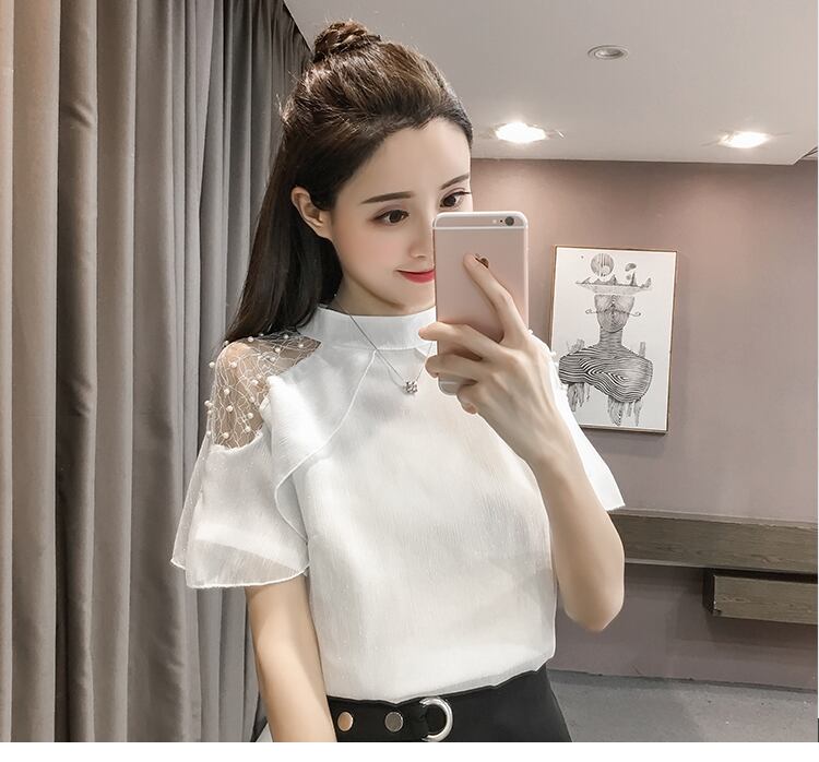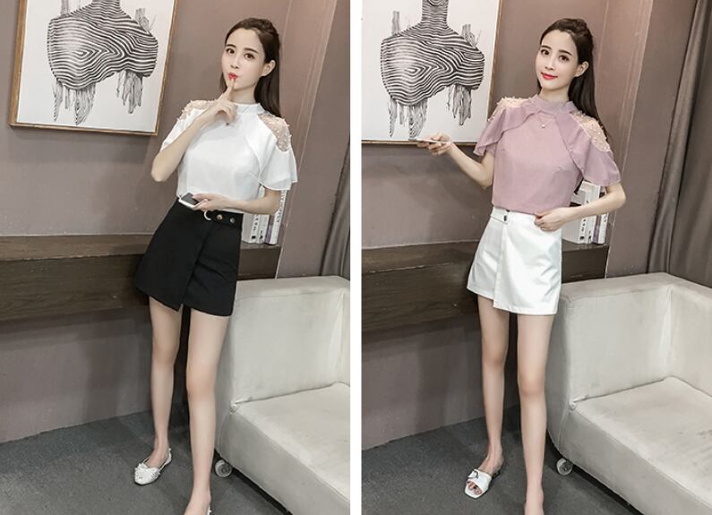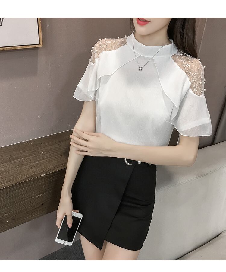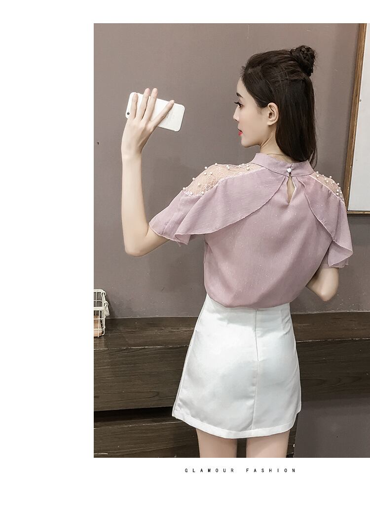 《入荷待ち》シフォン ブラウス シャツ レース フリル フェミニン ホワイト ピンク 大きいサイズ 女子会 デート 上品