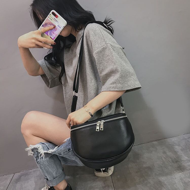 《入荷待ち》丸型 ショルダーバッグ カジュアル 肩掛け ダブルファスナー