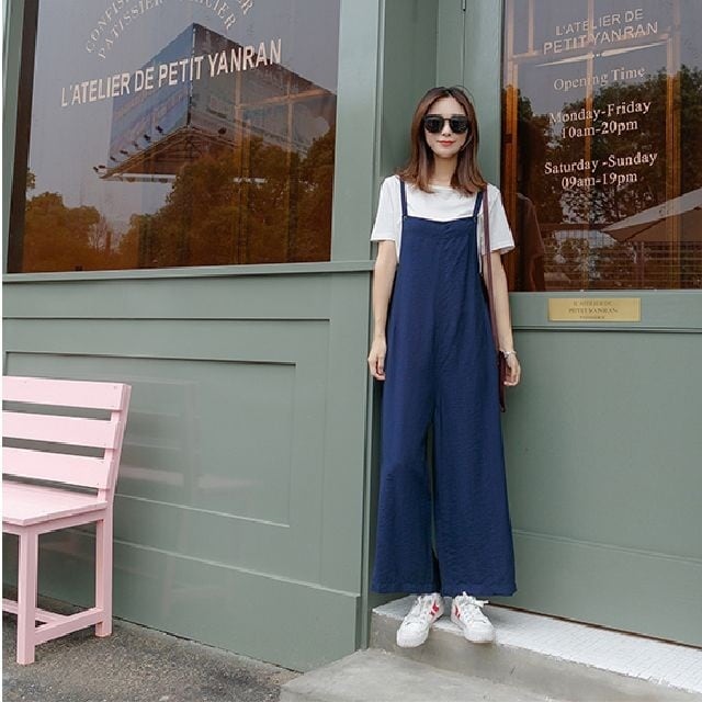 ゆったりしたデザインのサロペットは、楽チンなのにこなれ感