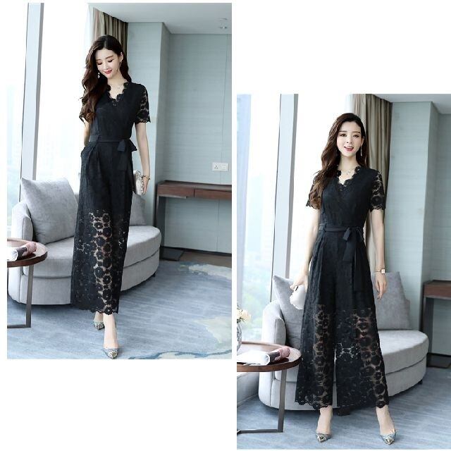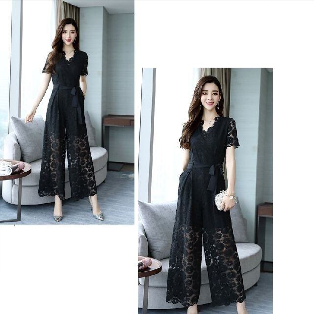 《再入荷》 レース オールインワン ワイドレッグパンツ ハイウエスト お出掛け 旅行 リゾート デート