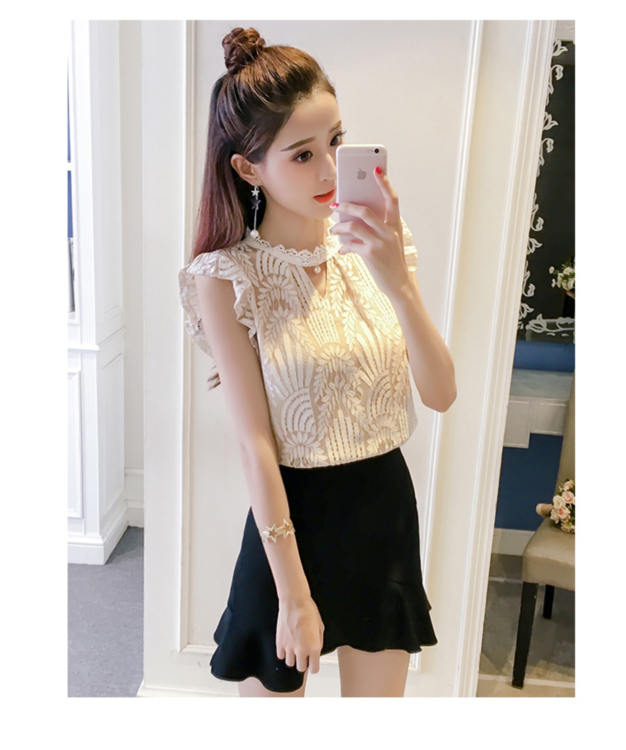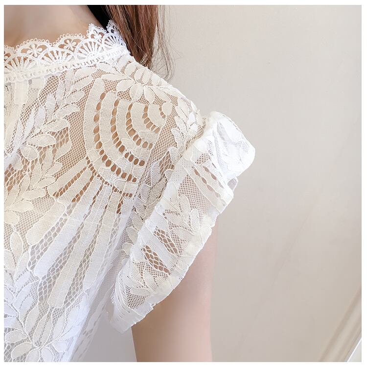 ≪入荷待ち≫ 半袖 総レース ブラウス シャツ ハイネック パール 上品 パーティーお呼ばれ デート