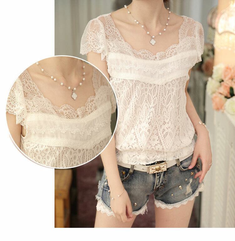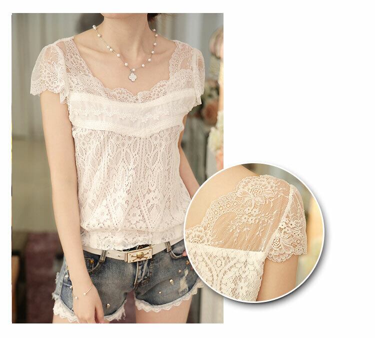 総レース トップス カットソー 半袖 透け感 シースルー フェミニン デート お呼ばれ ホワイト