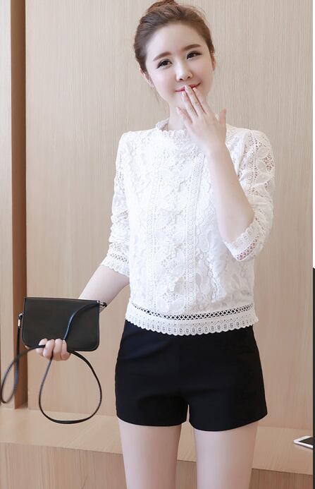 ノーカラーだけどキチンと感もある総レーストップスです。