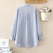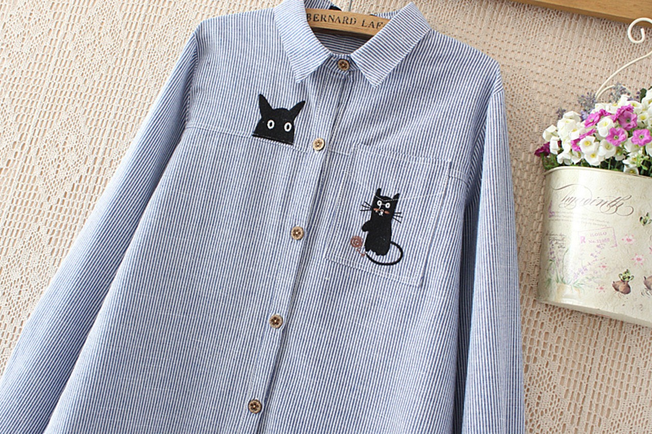 《入荷待ち》猫 ネコ ねこ ストライプ シャツ ブラウス 大人可愛い 長袖 ブルー ブラック