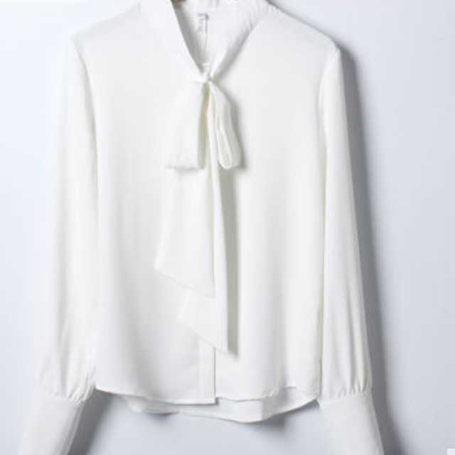 《入荷待ち》シャツ ブラウス リボン 上品 ホワイト パフスリーブ シンプル 長袖 お呼ばれ デート