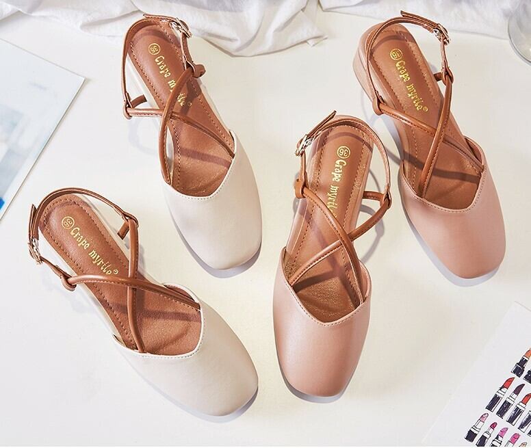 《入荷待ち》クロスストラップ パンプス サンダル オフィス おしゃれ シック ぺたんこ