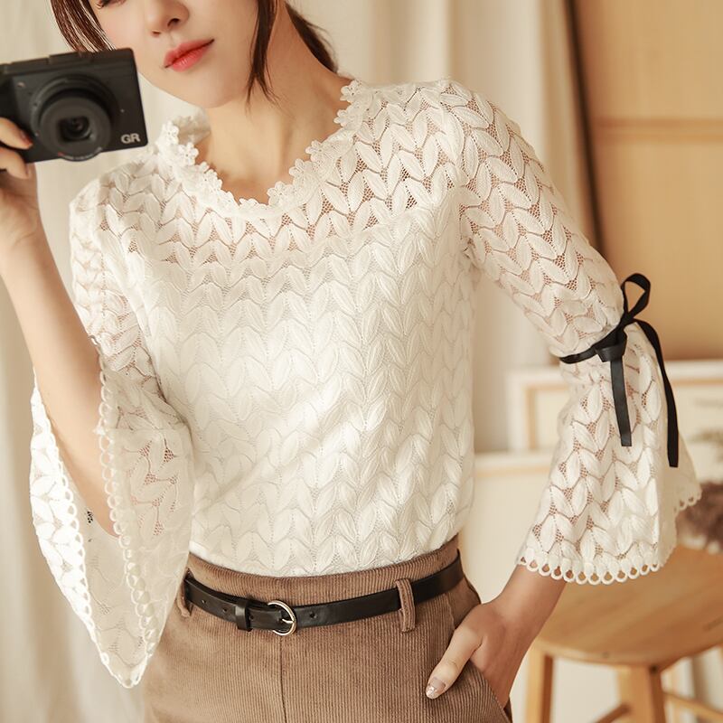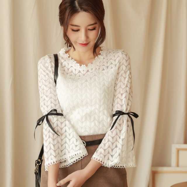 《再入荷》 トップス カットソー プルオーバー ベルスリーブ 七分丈 ガーリー フェミニン リボン デート お呼ばれ