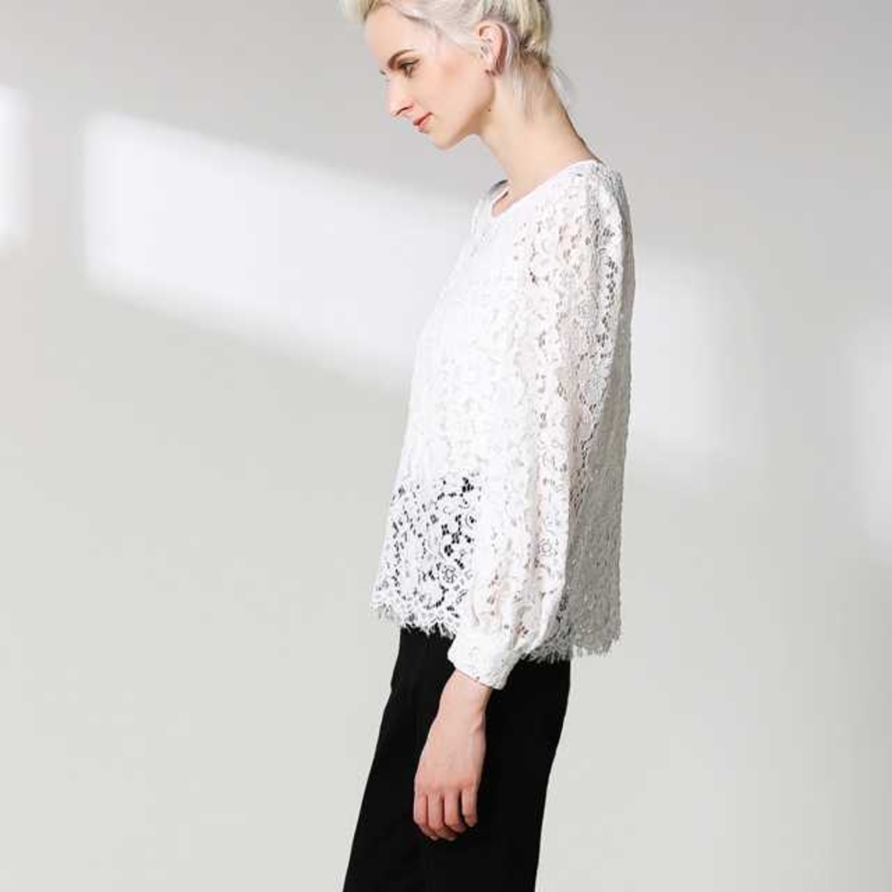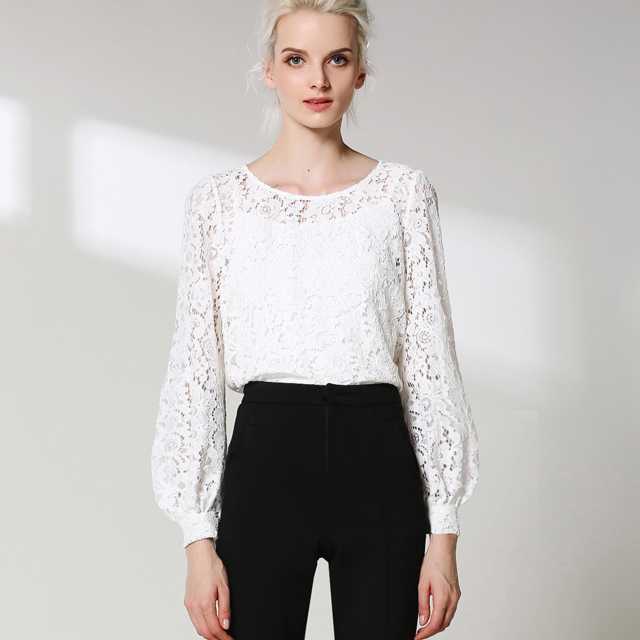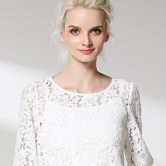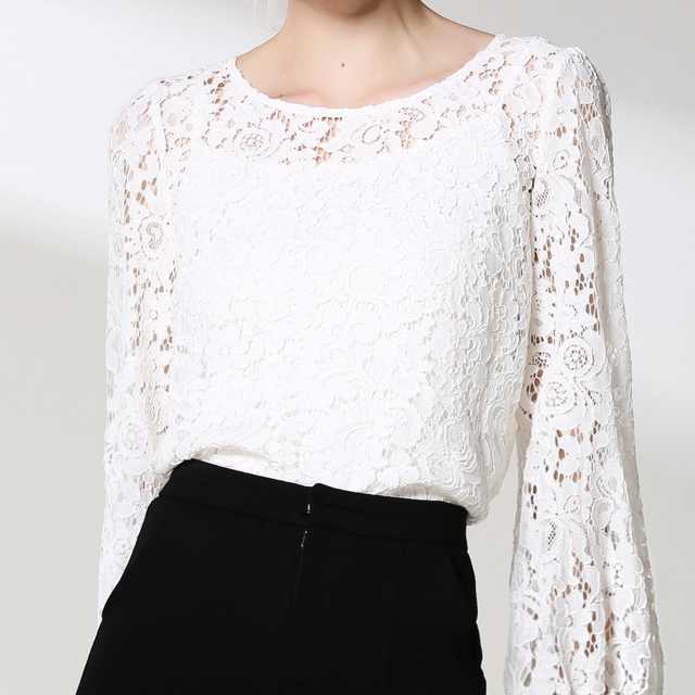 《入荷待ち》トップス レース シースルー ラウンドネック 長袖 大人可愛い シンプル フェミニン