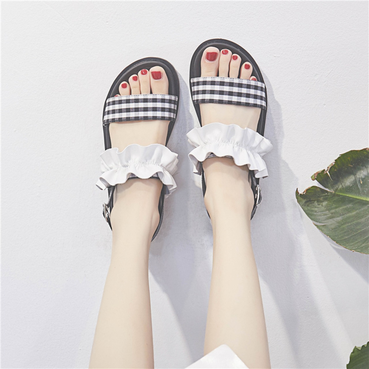 《入荷待ち》サンダル ぺたんこ かわいい ガーリー バックストラップ オープントゥ 夏 レディース