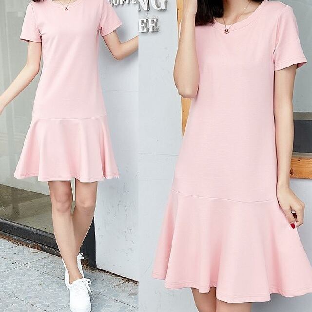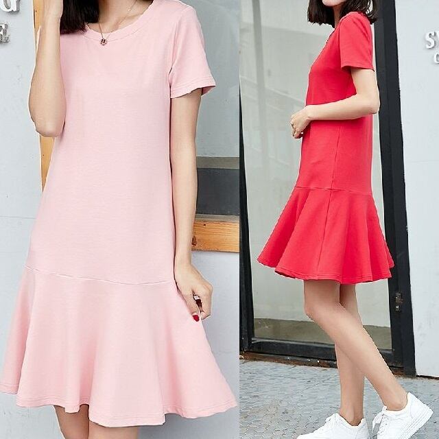 《入荷待ち》裾フリル ワンピース ミニ丈 ラウンドネック お出掛け 旅行 リゾート デート 半袖 ショート