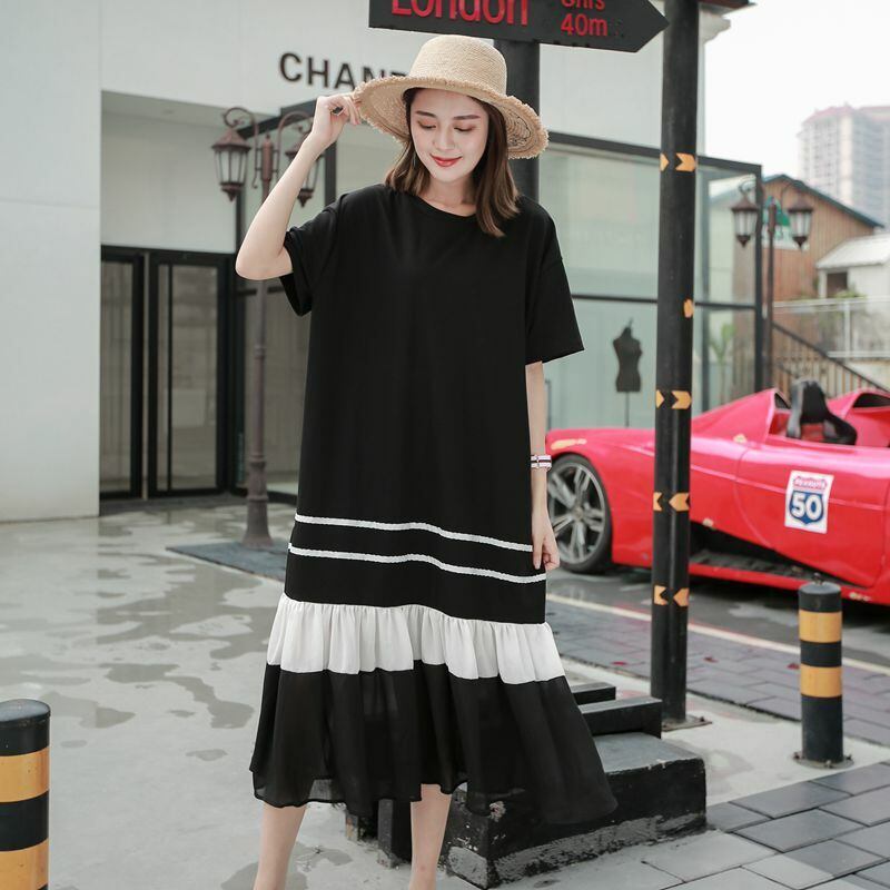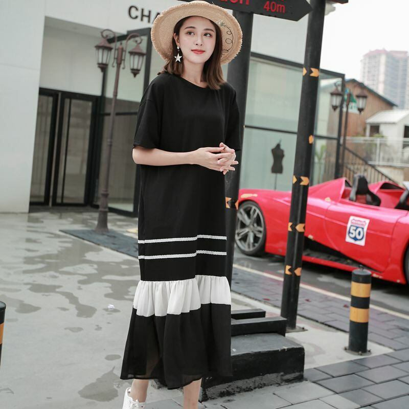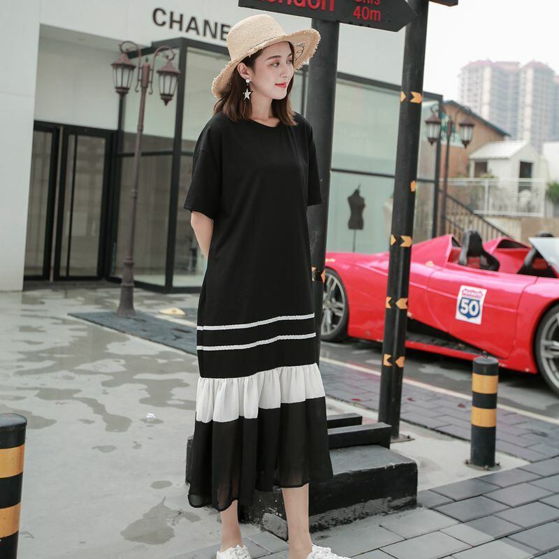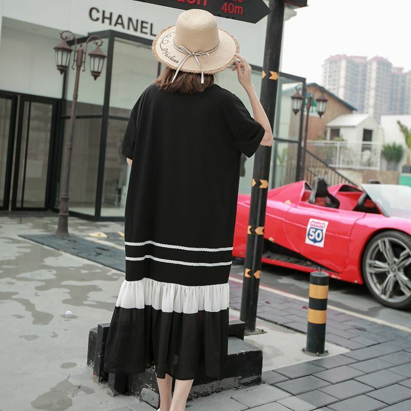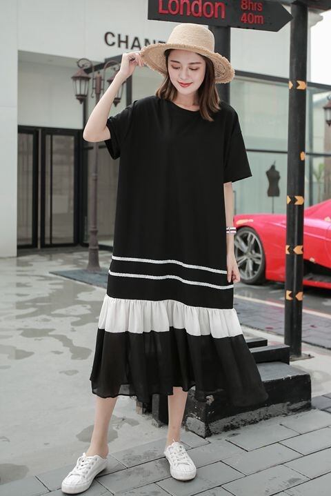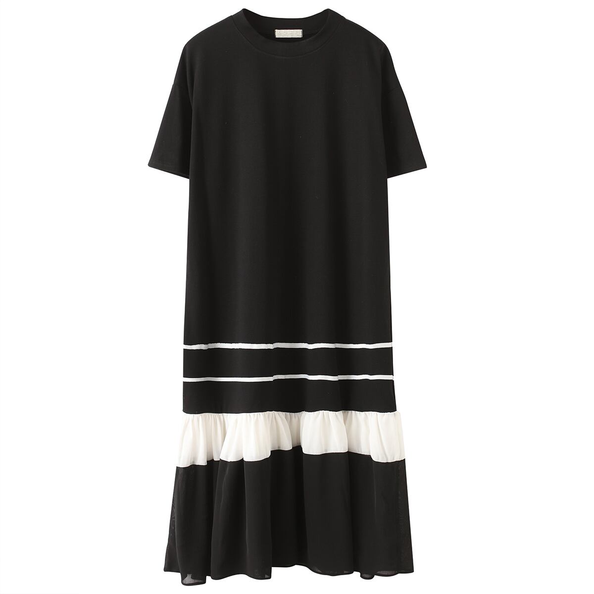 ワンピース 半袖 切り替え ゆったり ミモレ丈 ビッグシルエット オーバーサイズ シンプル カジュアル