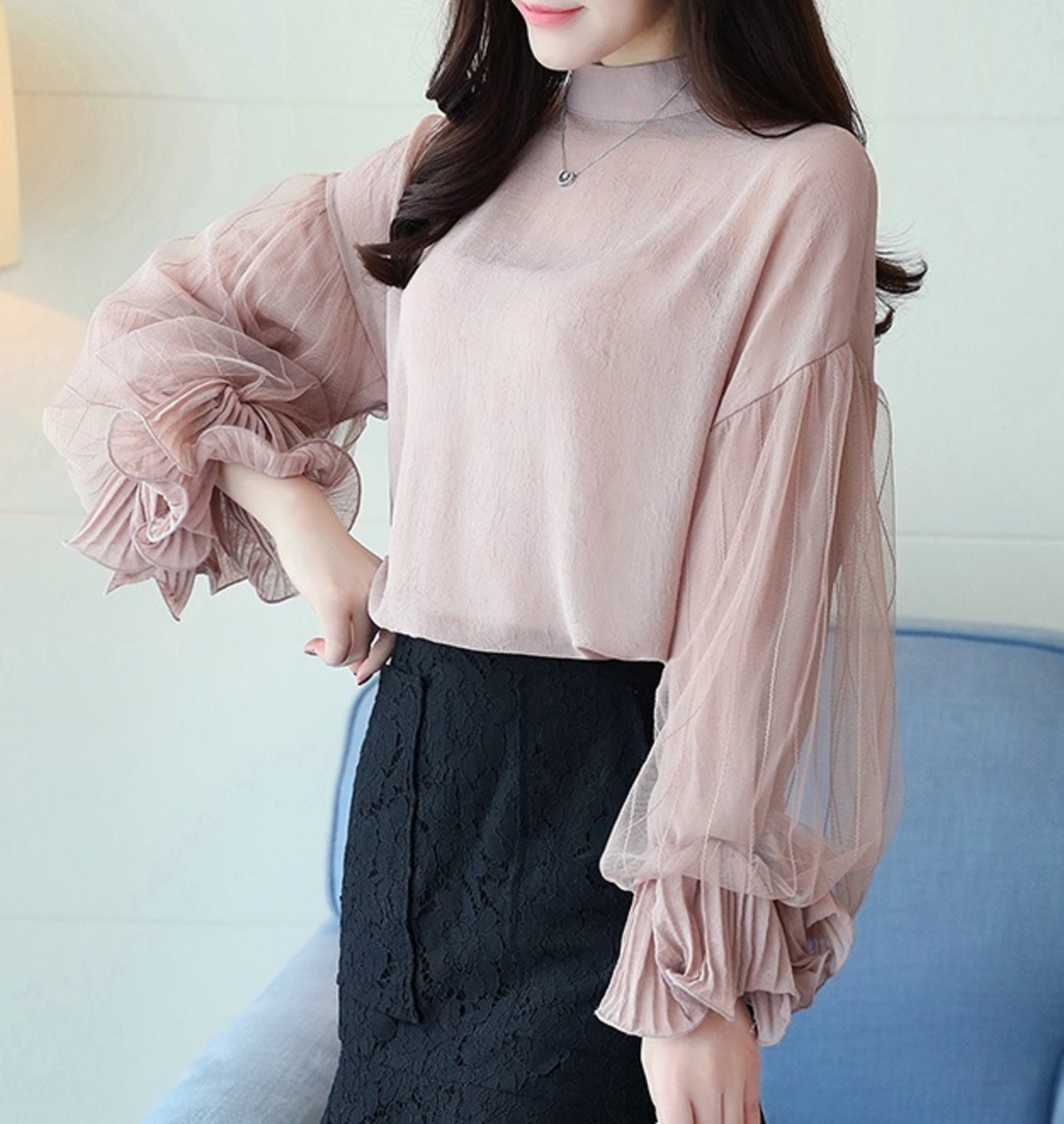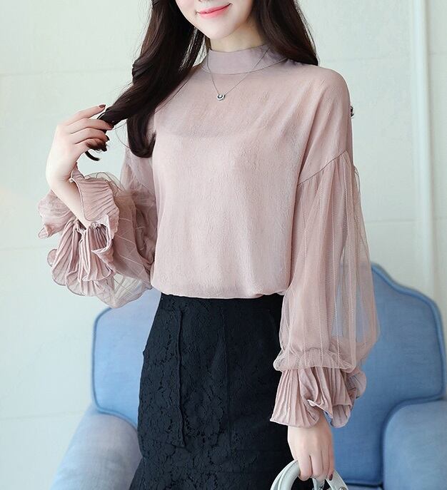《再入荷》ブラウス シャツ シースルー 透け感 長袖 ボリューム袖 ホワイト ピンク 大きいサイズ 大人可愛い フェミニン