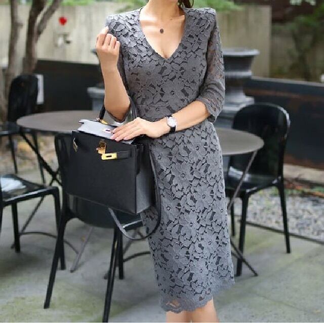 《再入荷》エレガント ワンピース 総レース お出掛け 旅行 リゾート デート 七分丈 キレイめ ボディコン タイト ミニ丈