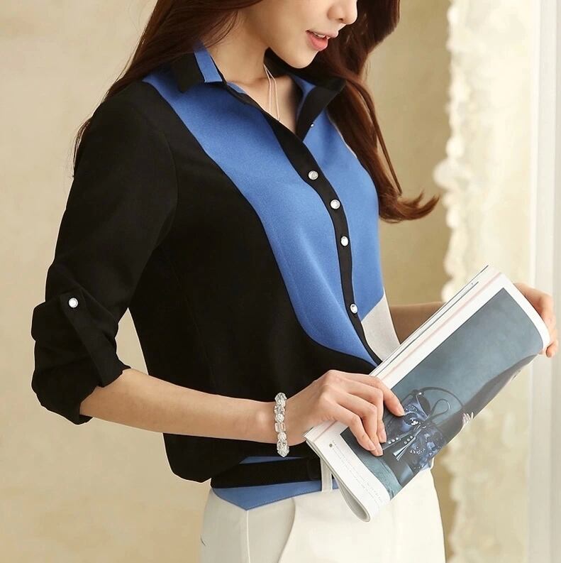 ≪入荷待ち≫シフォン ブラウス シャツ ステッチ ブルー 大きいサイズ 女子会 デート オフィス