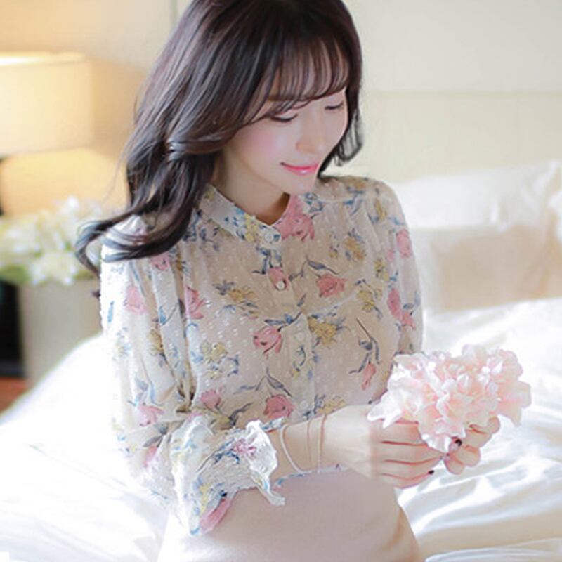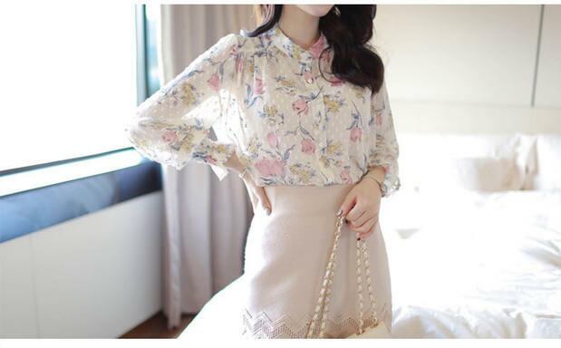 シフォン シャツ ブラウス 花柄 レース パフスリーブ フェミニン ピンク 女子会 デート