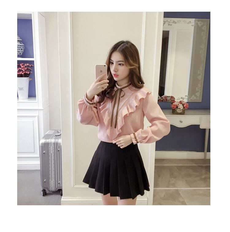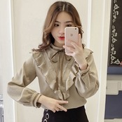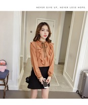 《入荷待ち》フェミニン ブラウス シャツ リボン フリル レトロ グレー ホワイト ピンク ブラウン オレンジ 女子会 デート