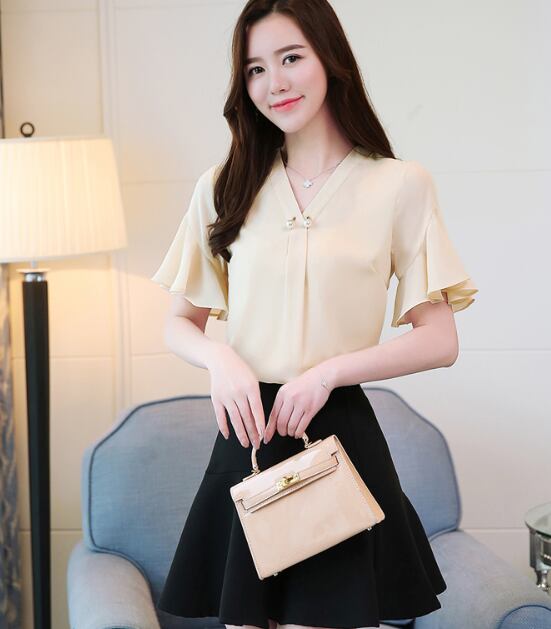 シフォン ブラウス シャツ ベルスリーブ Vネック フェミニン ピンク グリーン ホワイト ブルー ベージュ 大きいサイズ 女子会 デート