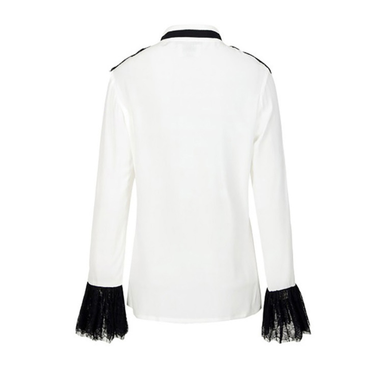 《入荷待ち》シフォン ブラウス シャツ レース ベルスリーブ リボン フェミニン ホワイト 女子会 デート