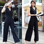《入荷待ち》ワイドパンツ ハイウエスト オールインワン お出掛け 旅行 リゾート デート ノースリーブ スクエアネック シンプル キレイめ こなれ