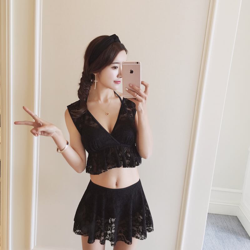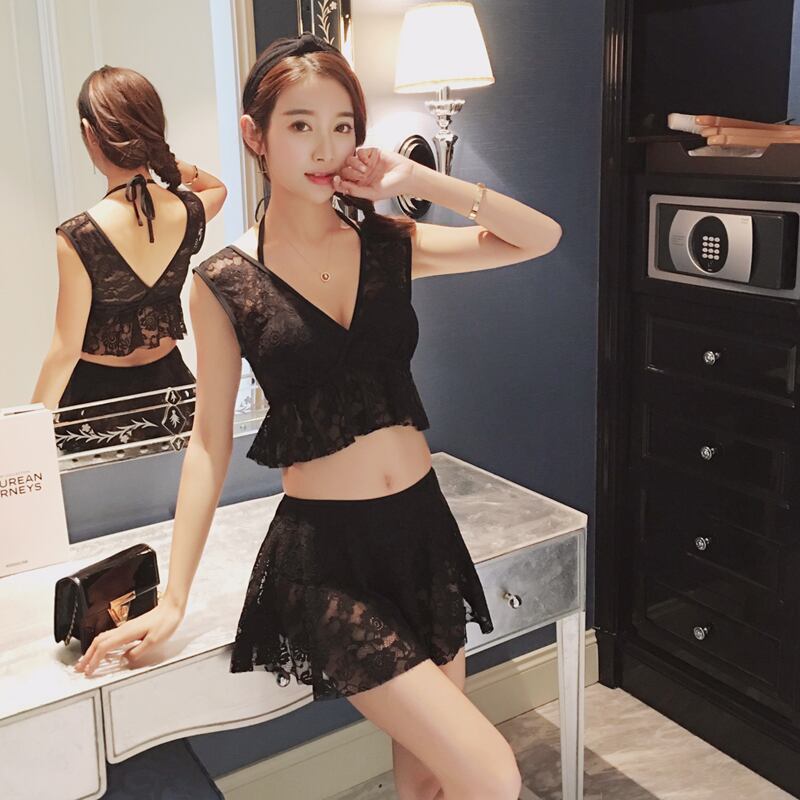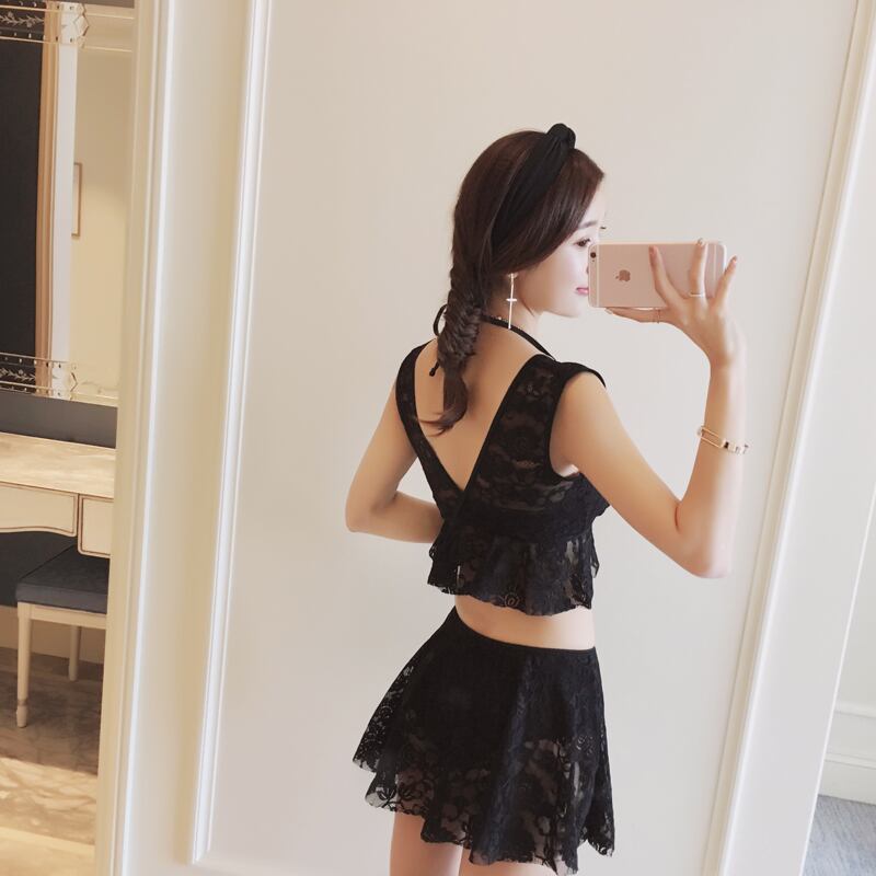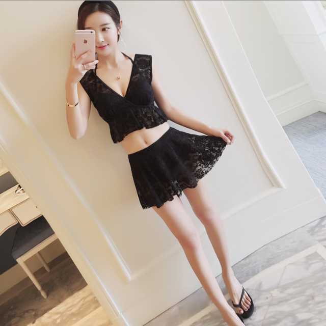《入荷待ち》大人可愛い ビキニ 水着 タンキニ 総レース ホルターネック リボン ビーチ リゾート プール