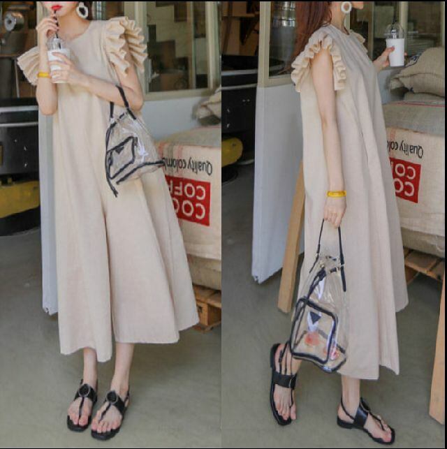リネン100%素材のさらりとした上品でキュートなオシャレオールインワン♪