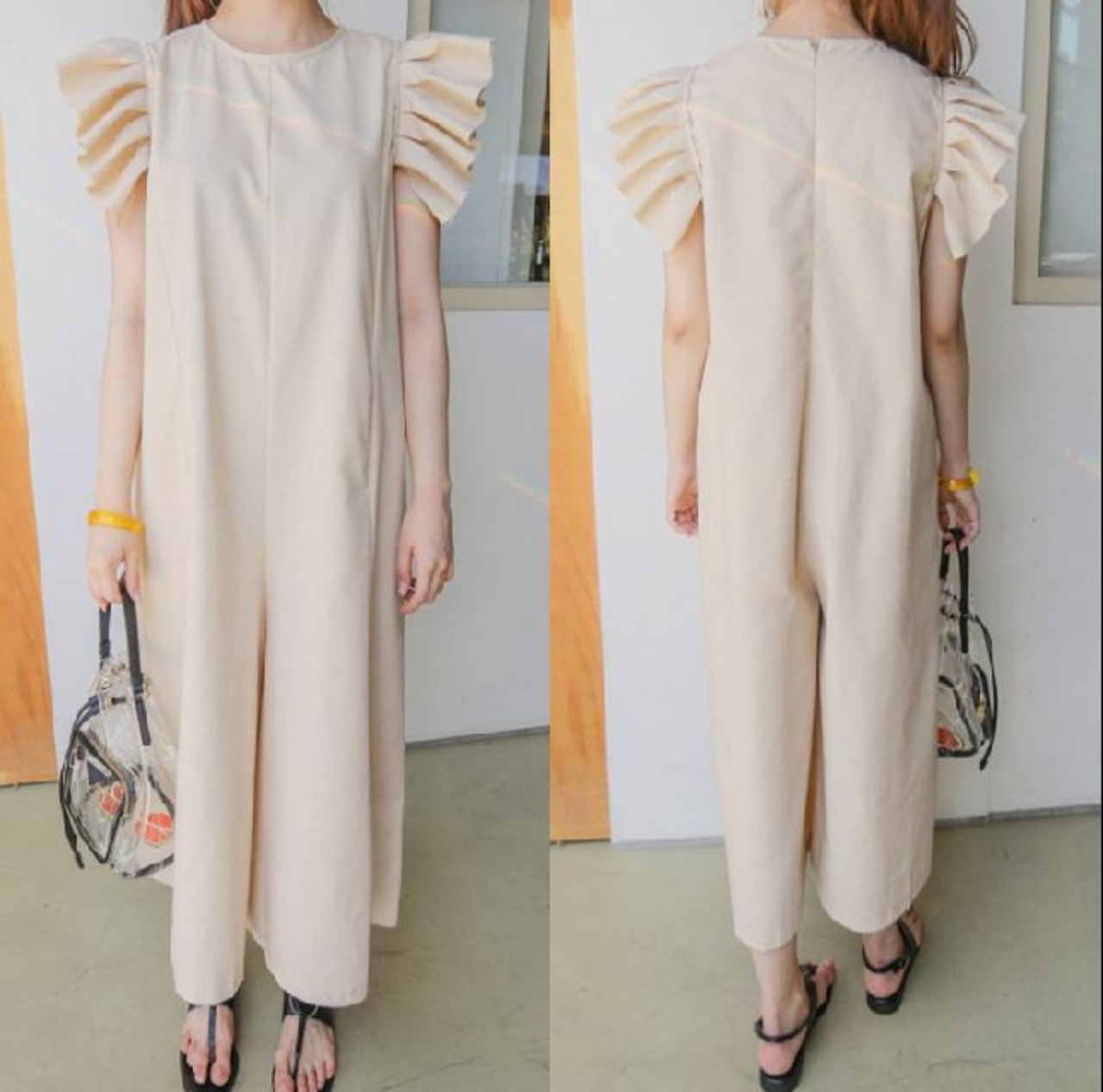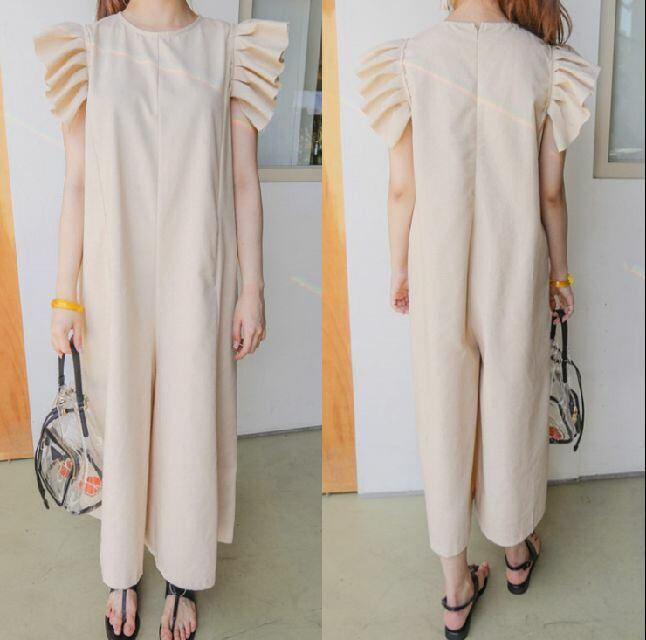 ≪入荷待ち≫ショルダー プリーツ フレア ポイント ジャンプ オールインワン お出掛け 旅行 リゾート デート ノースリーブ ゆったり