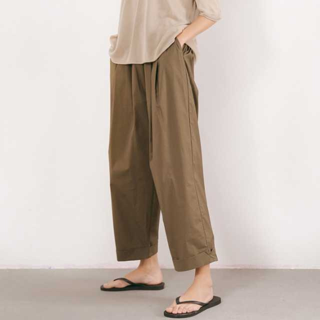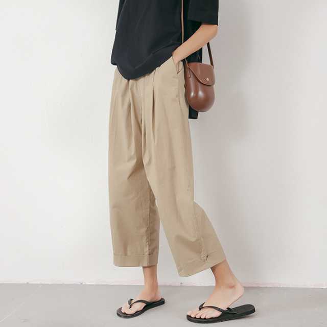 ≪入荷待ち≫ パンツ ワイドパンツ ベージュ キャメル カーキ 無地 ウエストゴム カジュアル こなれ感 シンプル