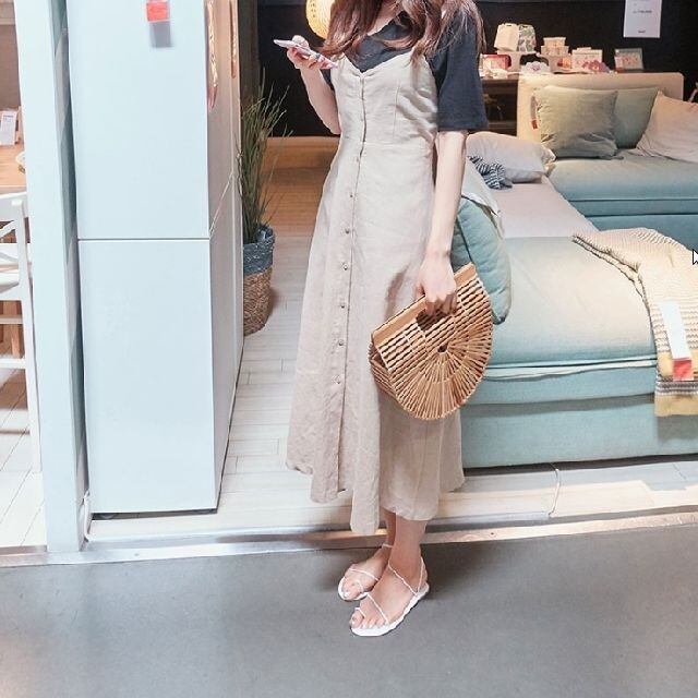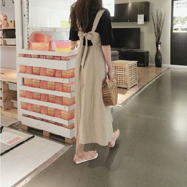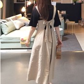 バックリボン 可愛い ナチュラルテイスト Aラインワンピ お出掛け 旅行 リゾート デート